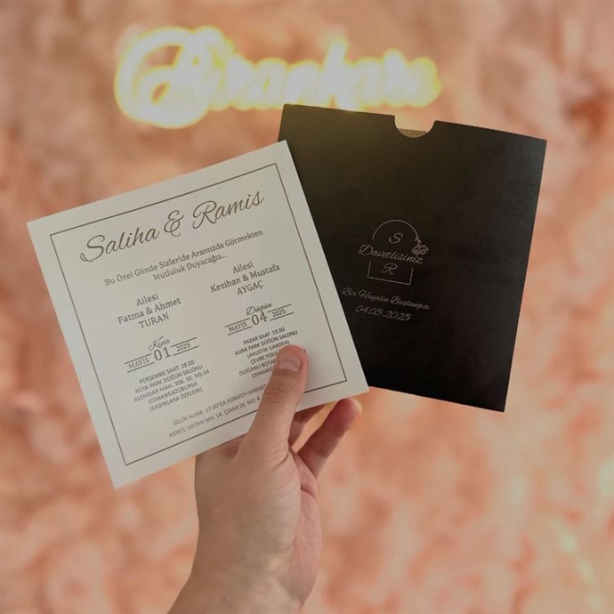 Bir düğünün ilk heyecanı davetiyeyle başlar.Birankare Fotoğraf Stüdyosu olarak, sadece fotoğraf değil; tarzınızı yansıtan, unutulmaz davetiyeler de tasarlıyoruz.Modern, minimal, romantik ve klasik çizgilerle hazırlanan davetiye modellerimiz;düğününüzün ruhunu daha ilk anda misafirlerinize hissettirir.Birankare davetiye koleksiyonunda: • Kişiye özel tasarım • Premium kâğıt ve baskı kalitesi • Altın yaldız, lak, kabartma ve özel kesim seçenekleri • Zarif tipografi ve modern şablonlar • Düğün, söz, nişan ve özel günlere özel modellerHer davetiye, sizin tarzınızdan bir iz taşır.Çünkü bu sadece bir kart değil; bir ömürlük hikâyenin ilk sayfasıdır.Detayda fark, tasarımda imza: Birankare.